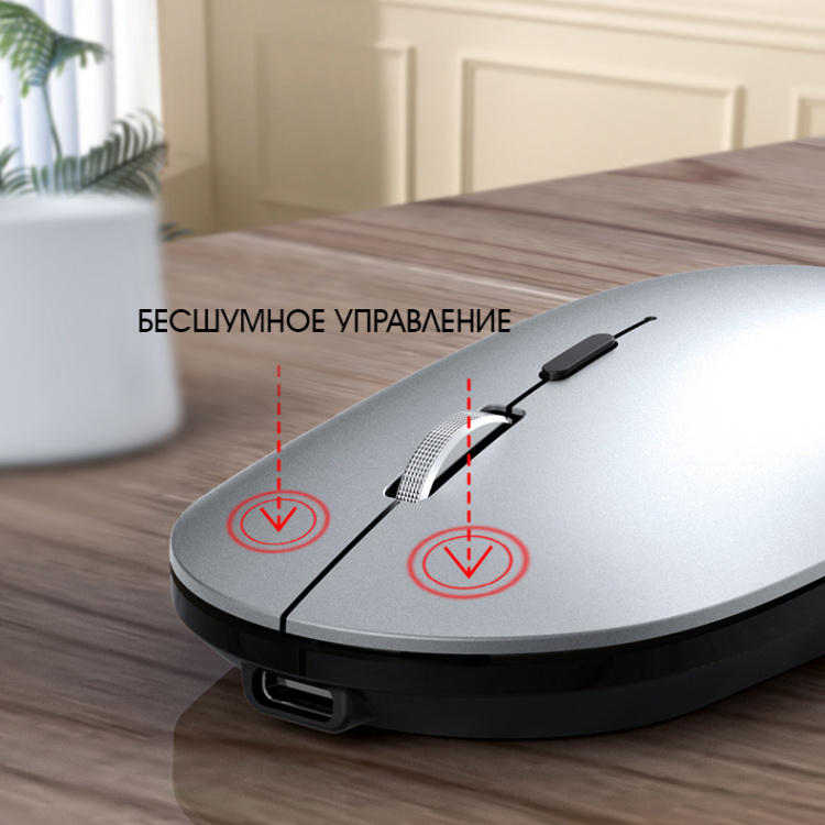 Орбита OT-PCM70 Серебряная мышь беспроводная (USB/Bluetooth,аккум)