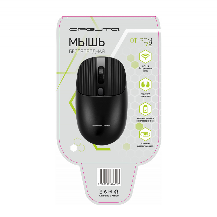 Орбита OT-PCM72 Черная мышь беспроводная (USB, 2.4ГГц, 1АА, 10м)