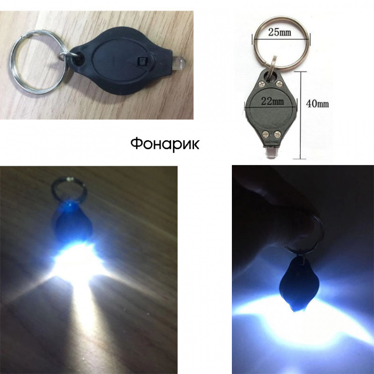 2) Фонарик (3 режима, питание АА-в комплект не входит)