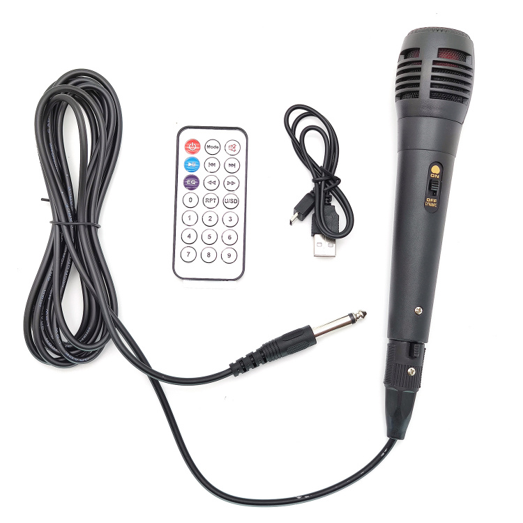 В комплекте проводной микрофон 3м, пульт ДУ