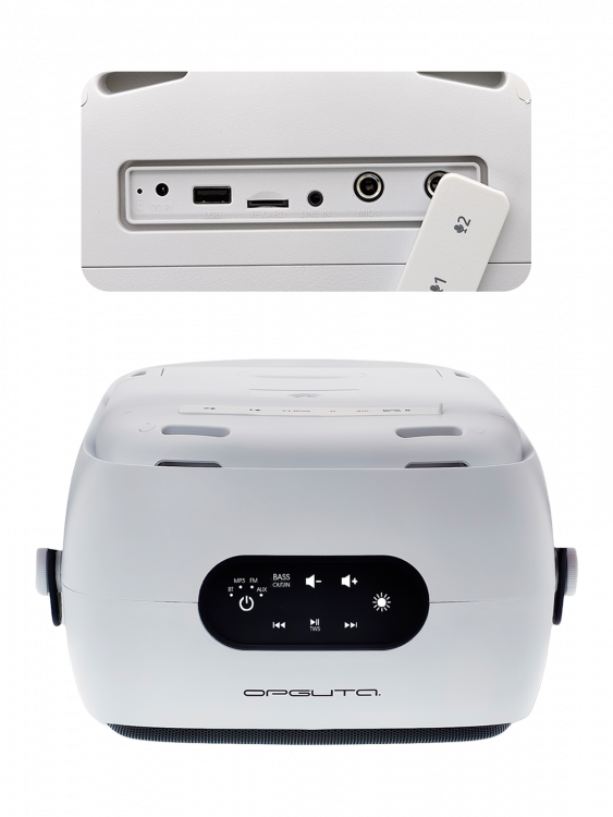 Микрофонная реверберация: эхо Регулировка высоких частот / баса Регулировка громкости микрофона LED подсветка (отключаемая) Запись на карту памяти Степень влагозащиты IPX55 |