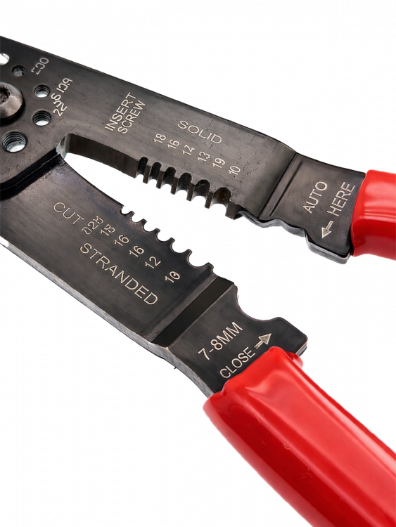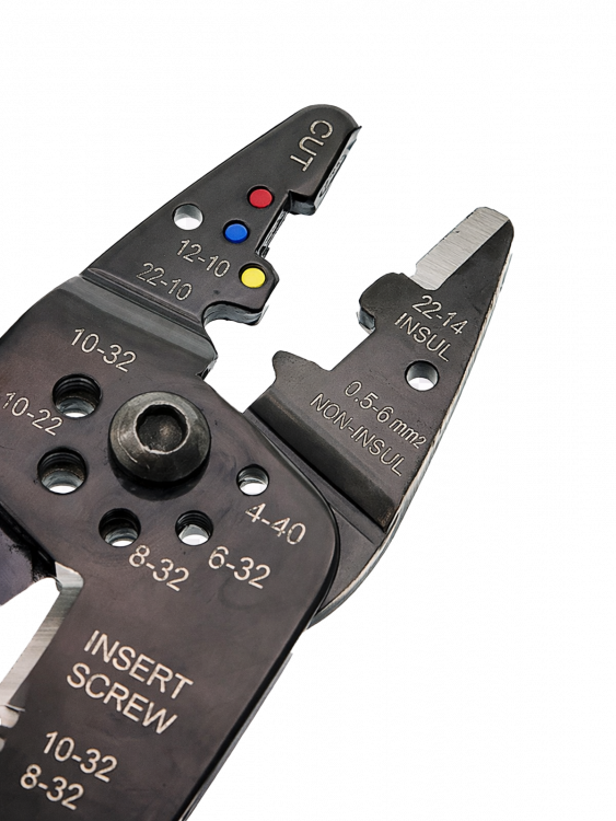 Снятия изоляции (зачистка) с проводов с 6 типоразмерами: 8-22 AWG