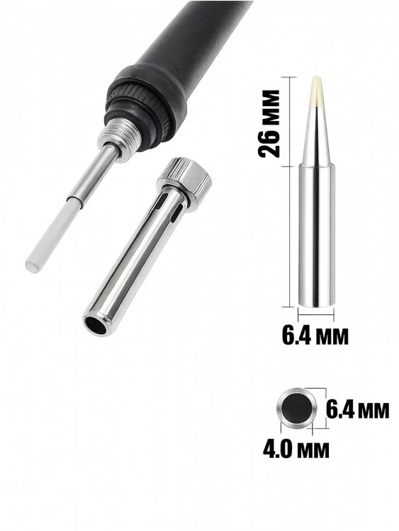 Паяльник с терморегулятором обеспечивает легкую настройку температуры, что позволяет работать с различными материалами: от пластика до металла. Ручка выполнена из прочного материала и удобно лежит в руке, снижая усталость даже при длительном использовании. Точное управление температурой способствует аккуратной работе и защищает компоненты от перегрева. Надежная конструкция устройства рассчитана на длительный срок службы и интенсивную эксплуатацию. Конусное жало обеспечивает отличную точность при выполнении мелких работ, а возможность замены жала добавляет функциональности инструменту. Вы можете легко подобрать нужное жало для своих задач, что делает паяльник универсальным помощником в вашем арсенале.