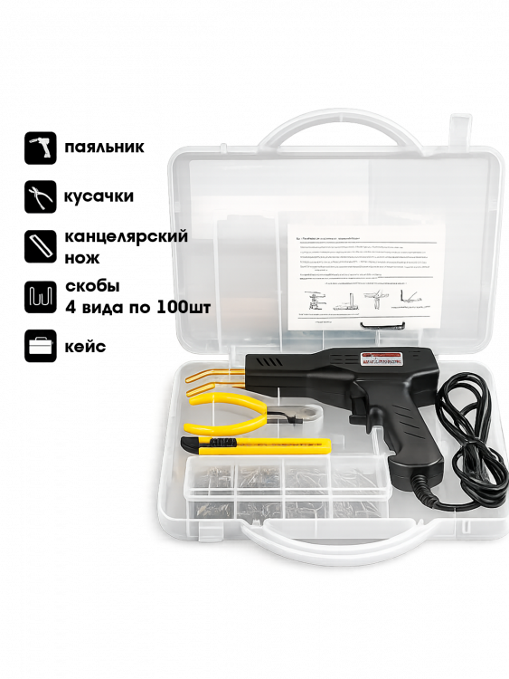| Паяльник, канцелярский нож, кусачки, скобы 4 вида по 100шт, инструкция на Русском |