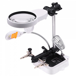 Третья рука для пайки с лупой и подсветкой 2 руки Помощник PM-INP40