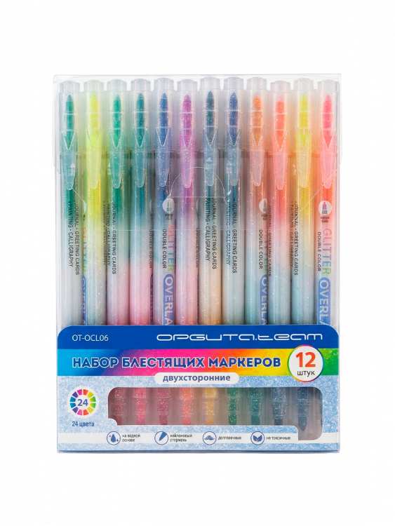 Набор блестящих двухсторонних акварельных маркеров на водной основе 12шт Орбита OT-OCL06