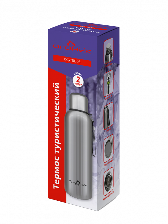 Отзывы о Термос туристический 2 литра для чая металлический с кружкой и ситечком Огонек OG-TRD06