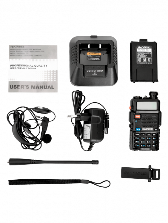Рация Baofeng UV-5R 5W с гарнитурой черная
