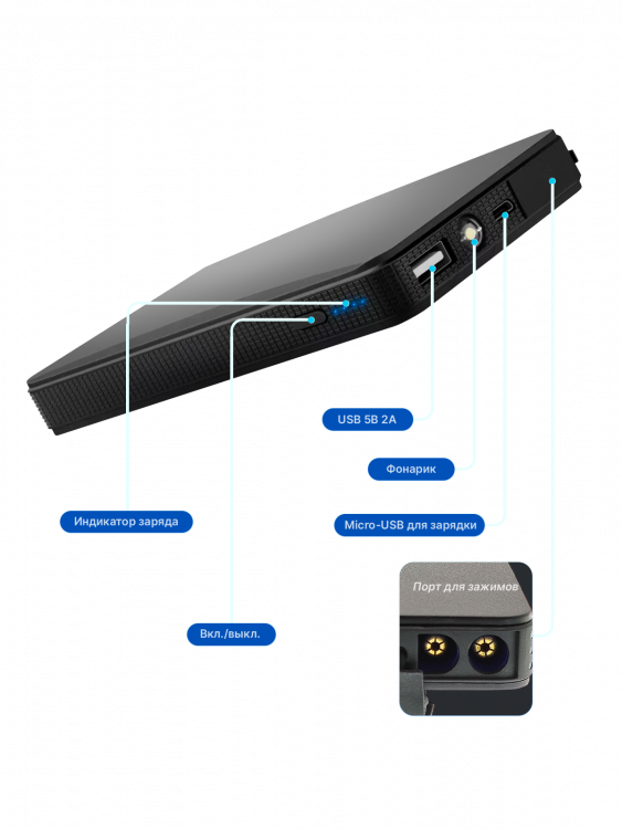 Разъемы: выход 1*USB (5В/2А) / вход ЗУ microUSB (5В/2А)