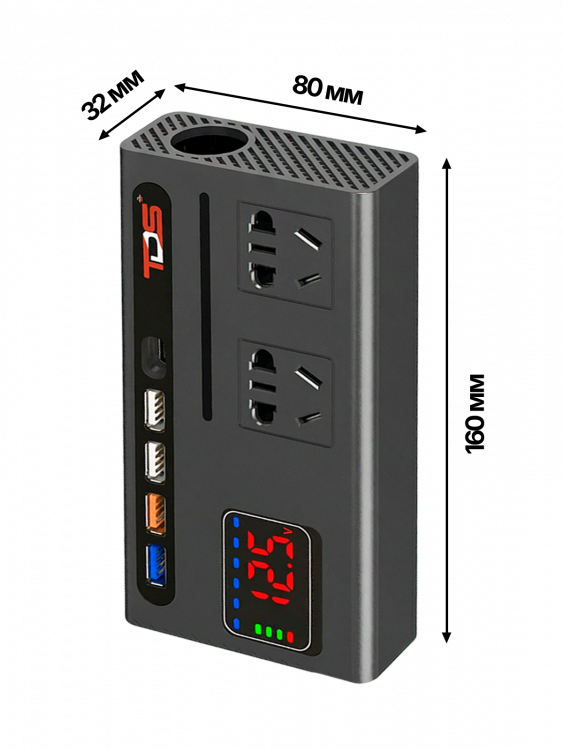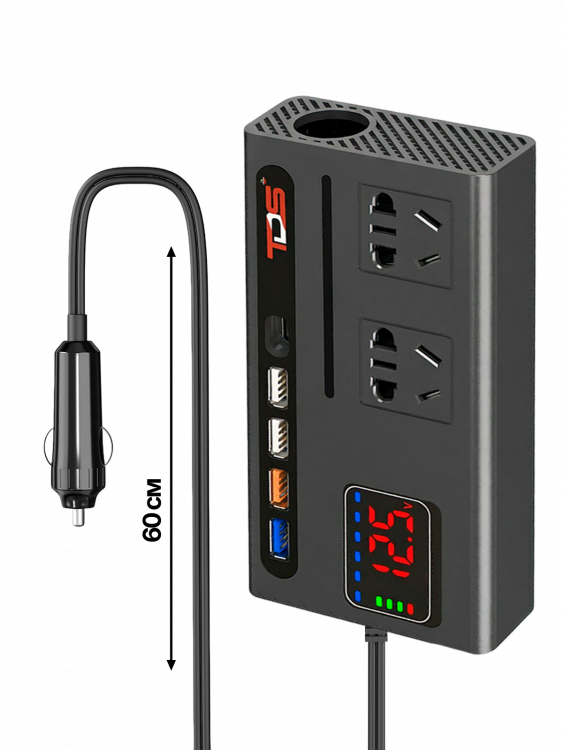 Отзывы о Инвертор автомобильный, преобразователь стабилизатор напряжения 12/220В, 150Вт TDS TS-CAU74
