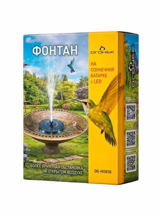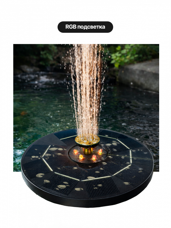 Фонтан садовый на солнечной батареее с подсветкой 16 см, Огонёк OG-HOG16