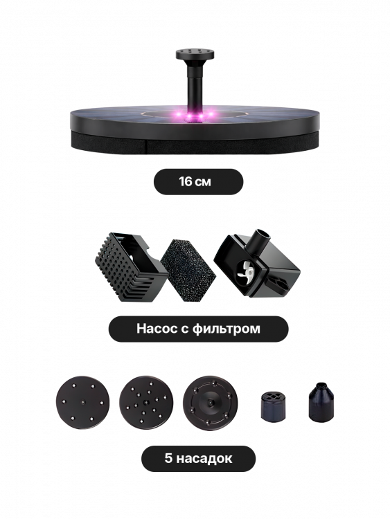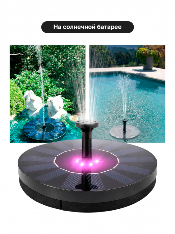 Фонтан садовый на солнечной батарее 18 см, 250м3/час Огонёк ...