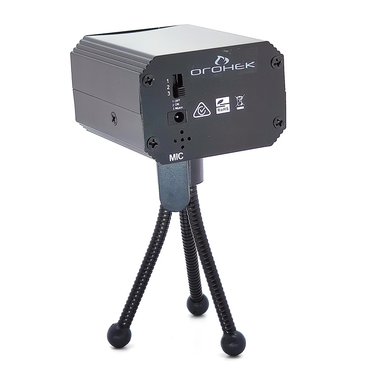 Режим управления: под музыку (с помошью микрофона лазер реагирует на громкие свуки) / автоматический