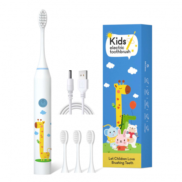 Электрическая зубная щетка детская ультразвуковая с насадками Огонёк OG-HBT02 Белая