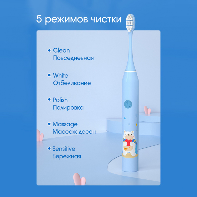 Отзывы о Электрическая зубная щетка детская ультразвуковая с насадками Огонёк OG-HBT02 Белая