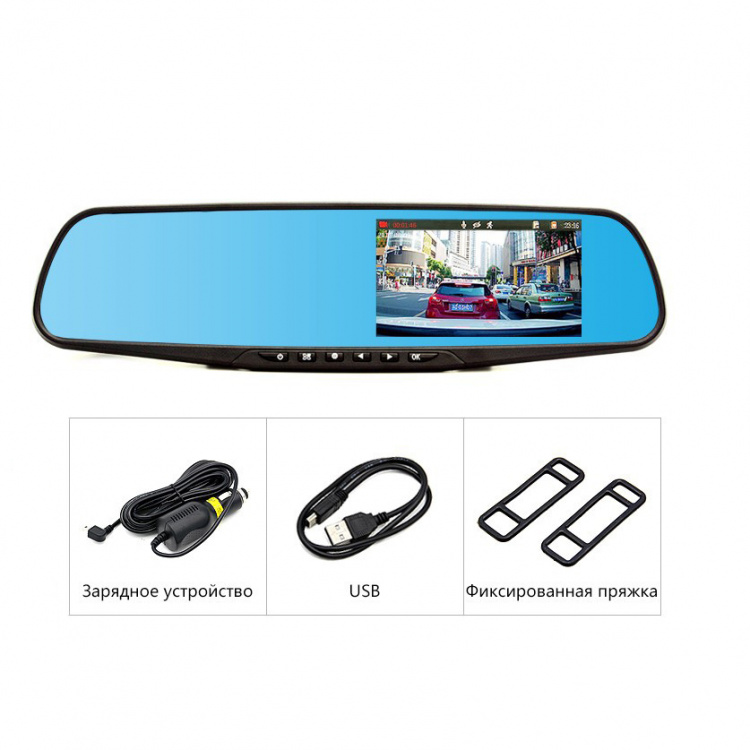 | видеорегистратор, кабель питания 1.5м, крепление на стекло, инструкция на Русском |