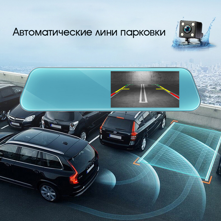 Видеорегистратор автомобильные зеркало с камерой заднего вид...