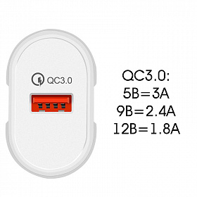 Орбита OT-APU29 Белый ЗУ с USB (QC3.0, 3000mA)
