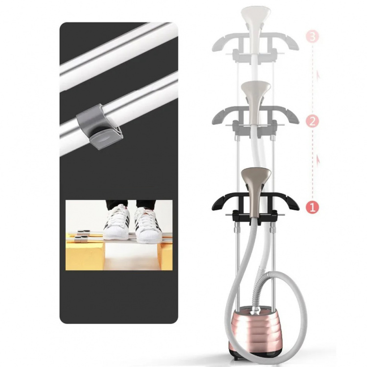 В зависимости от типа одежды и роста пользователя есть возможность регулировать высоту расположения вешалки с помощью алюминиевой телескопической трубки до 160 см.