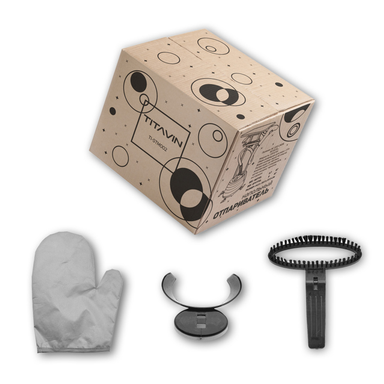 В комплекте с прибором поставляется насадка-щетка и перчатка для предохранения от ожога. Рекомендуется использовать щетку при отпаривании деликатных тканей, например шелка, чтобы уменьшить риск попадания воды на ткань во время отпаривания. Кроме того, щетка подходит и для очистки одежды от ворса, шерсти и пыли.
