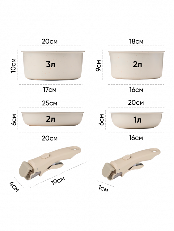 Отзывы о Набор посуды для приготовления с крышками Кремовый Огонёк OG-HOG14