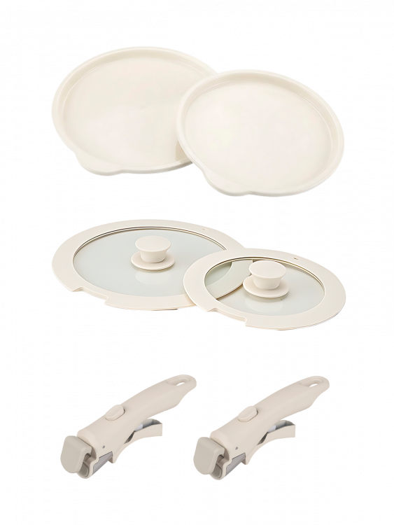 Набор посуды для приготовления с крышками Кремовый Огонёк OG-HOG14