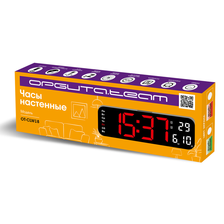 Часы настенные электронные с температурой и пультом Орбита O...