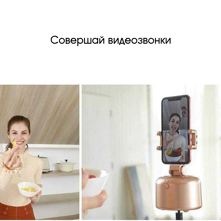 Eсть два режима (в приложении): «ФОТО» и «ЖИВОЙ». Телефон поворачивается на 360 °, чтобы следовать за вами и удерживать вас в центре кадра при съемке видео, фотосъемке или потоковой передаче в прямом эфире, сделайте селфи и больше не просите о помощи.