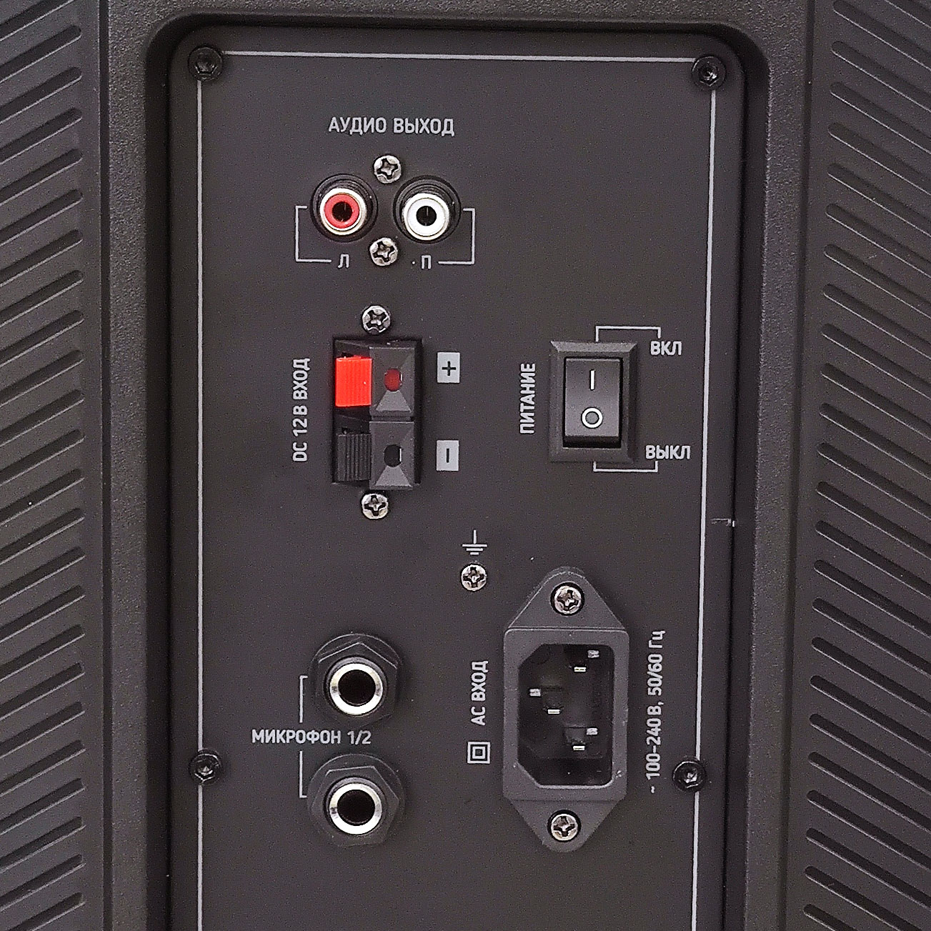 Встроенный аккумулятор есть - 4.5А / время работы на МАКС громкости до 2ч Беспроводной микрофон нет Прочее Микрофонная реверберация: эхо