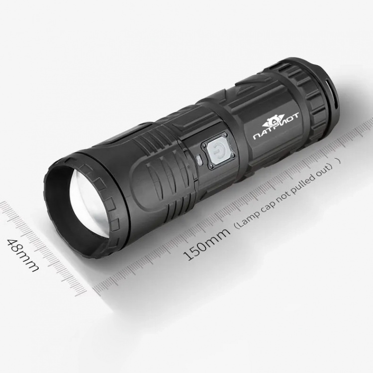 Патриот PT-FLR38 Черный фонарь ручной (1L, 18650.,ZOOM)