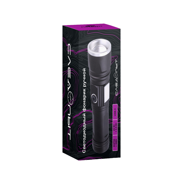Патриот PT-FLR38 Черный фонарь ручной (1L, 18650.,ZOOM)