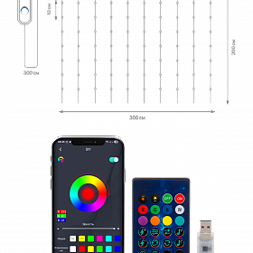 Огонек OG-LDG26 гирлянда-штора с крючком LED RGB (3х2м, пуль...