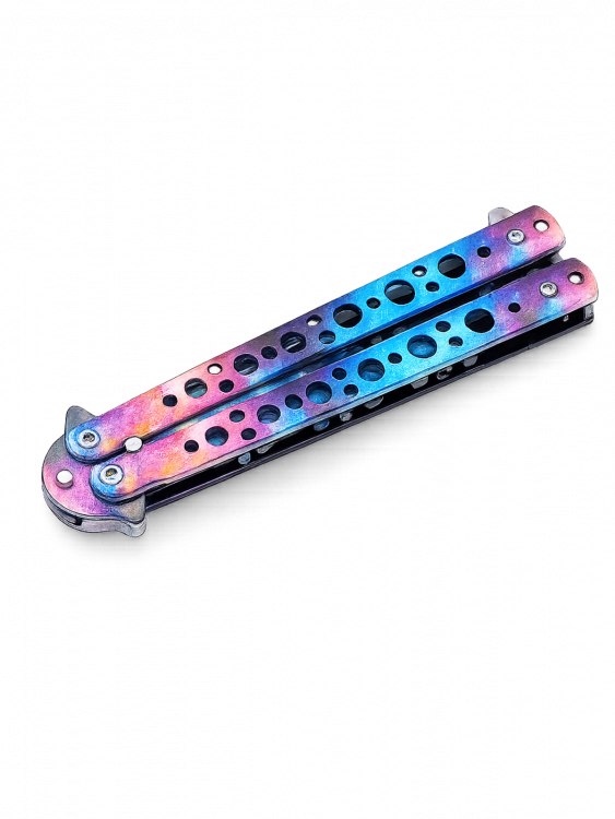 Нож-бабочка складной имеет разноцветную ручку, которая добавляет ему эстетической привлекательности