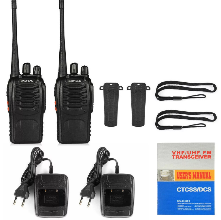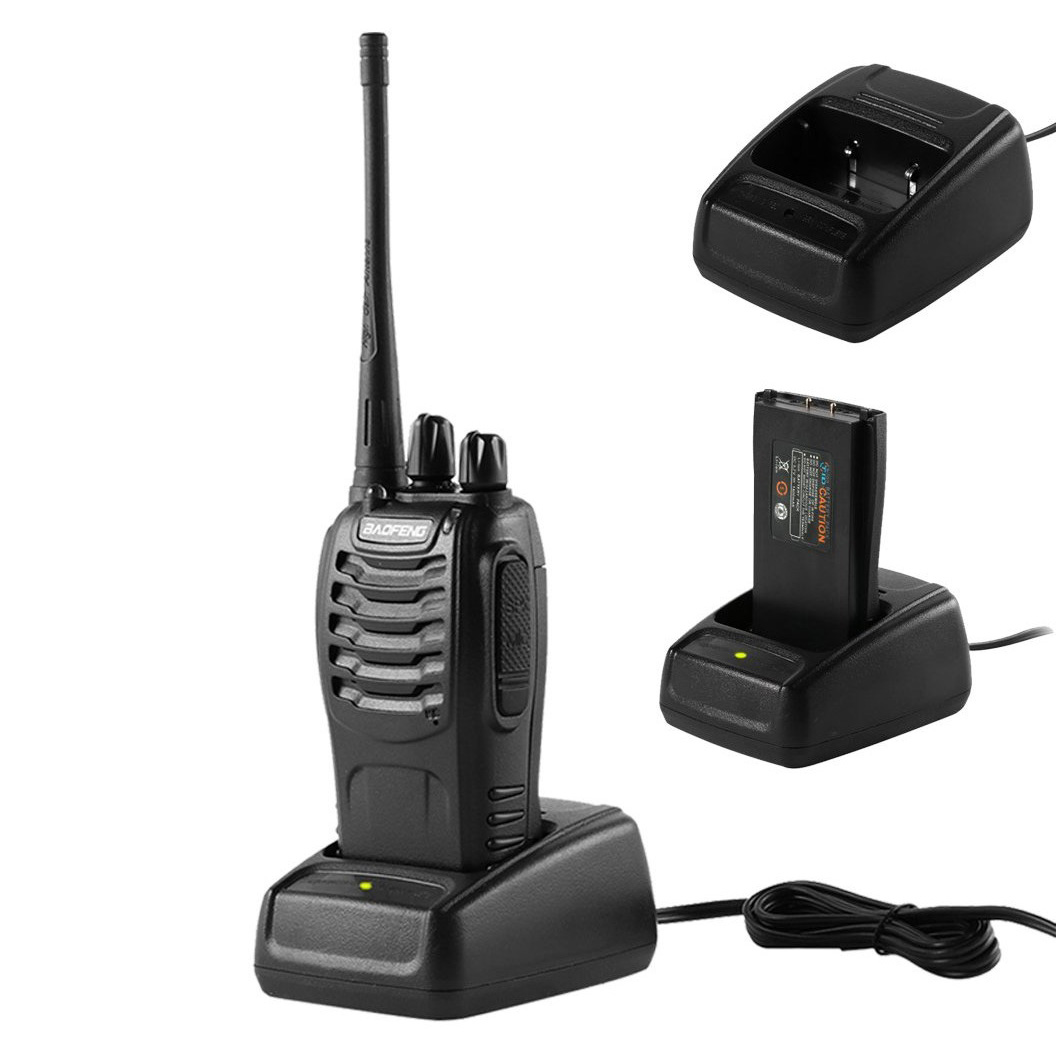 UHF(400-470 МГц)5W7 кмчерный150г115*60*33 ммпластикрадиостанция 2шт, аккумулятор 2шт, антенна 2шт, ремешок на кисть руки 2шт, клипса на пояс 2шт, зарядный стакан 2шт, инструкция на Английском