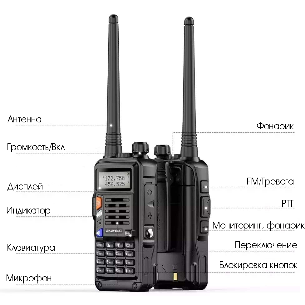 Поддержка PTT (Push-to-talk, нажми и говори, позволяет переключать рацию из режима приема в режим передачи. Большинство раций работают в полудуплексном режиме, то есть рация может только одно — либо передавать радиосигнал, либо принимать его): да