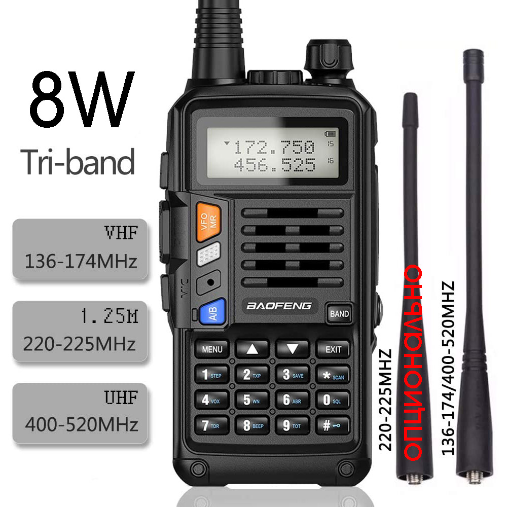 VHF(136-174 МГц) / UHF(400-520 МГц)8W8 кмчерный240г110*58*32 ммпластик