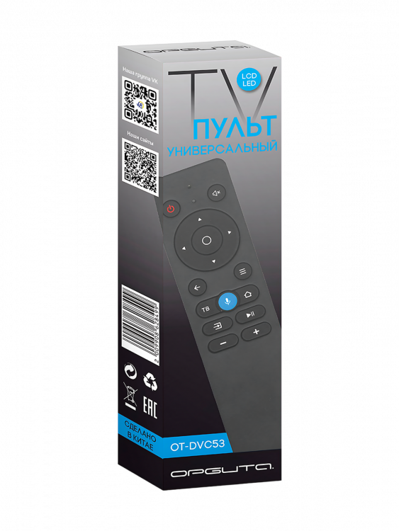 Пульт ду универсальный для телевизоров с голосовым поиском Орбита OT-DVC53