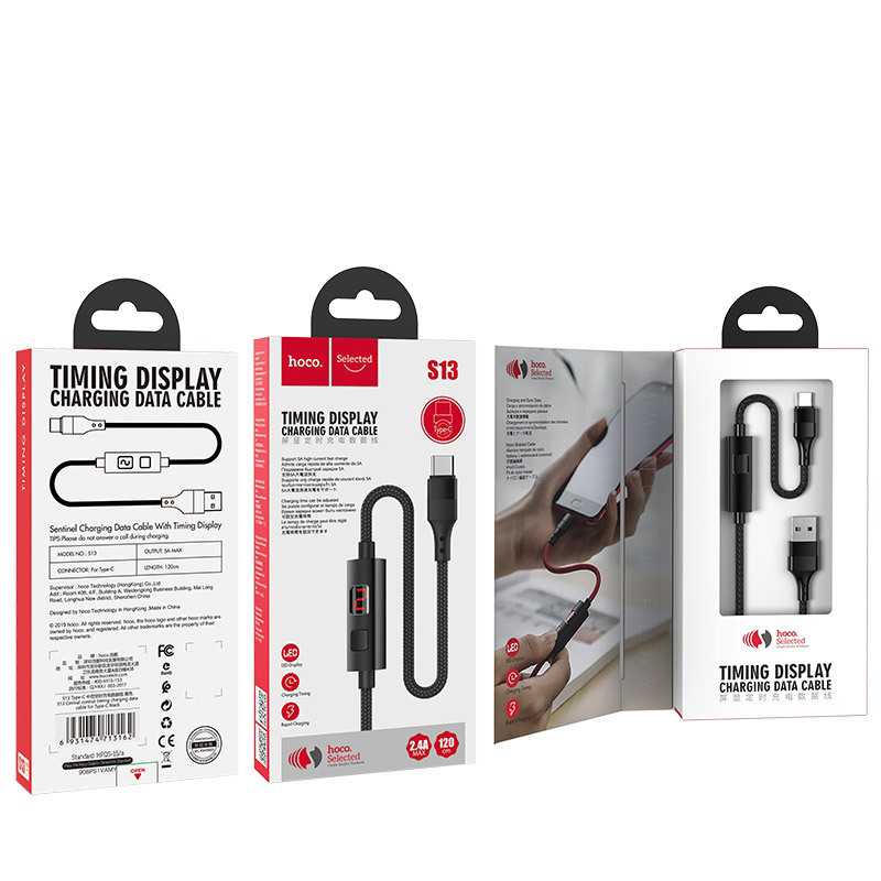 - HOCO S13 Черный кабель USB 2.4A (TYPE C) 1.2м
