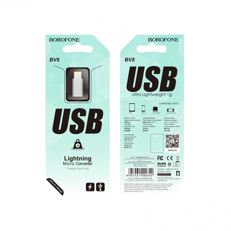 BOROFONE BV5 переходник (гнездо MicroUSB - штекер Lightning)