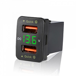 Розетка питания на 2 USB гнезда12-24В TDS TS-CAU56 Зеленая