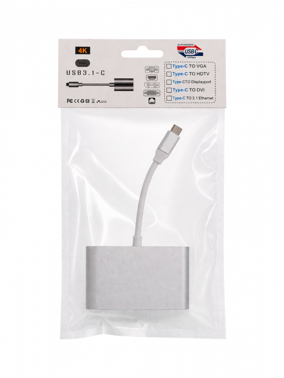 Орбита OT-AVW55 переходник (штекер TYPE-C - гнездо USB 3.0/VGA/TYPE-C) 15см